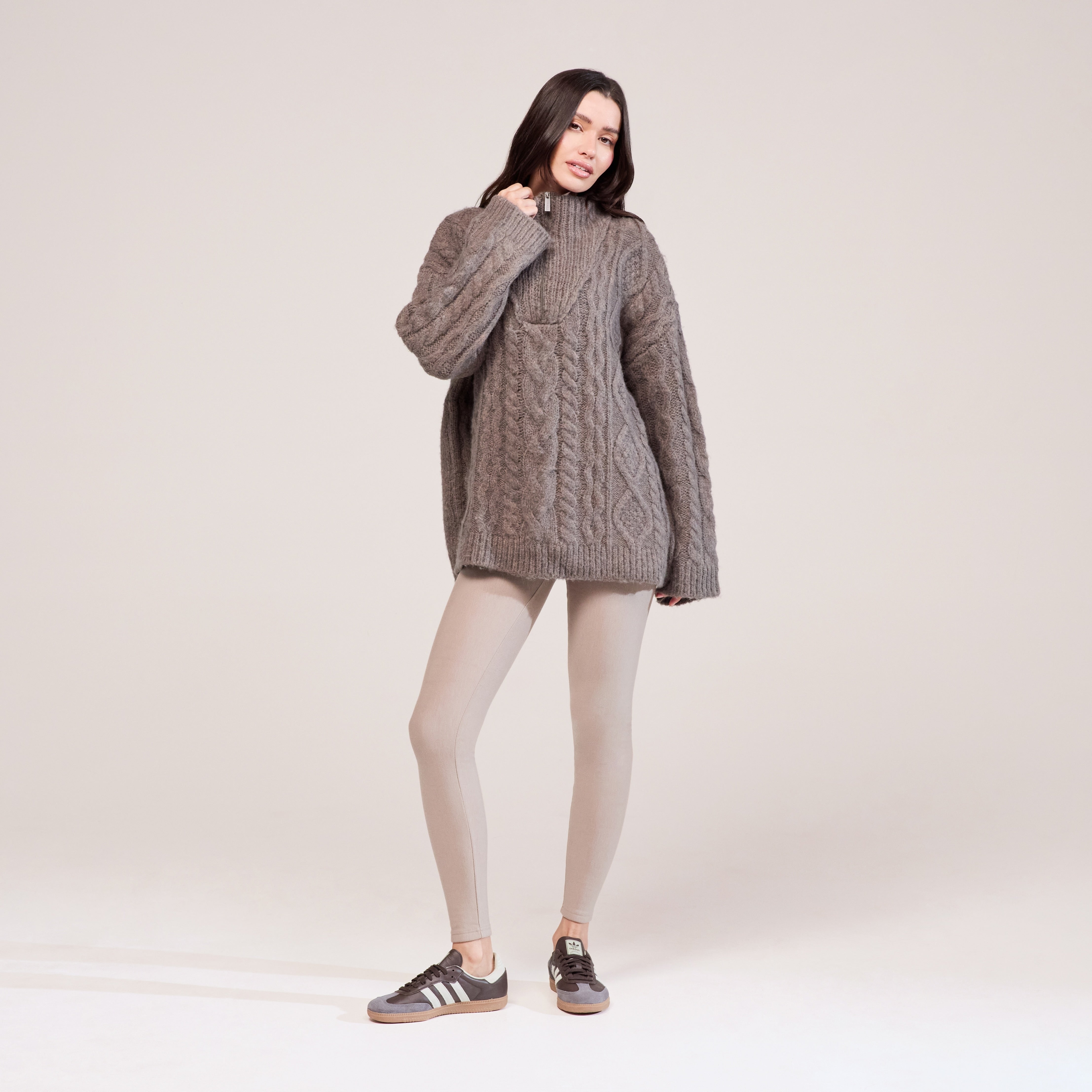 Cable Knit 1/4 Zip Jumper | Mocha