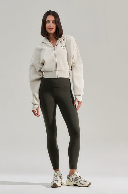 ALL SZN Organic Crop Zip-Through Hoodie | Ecru